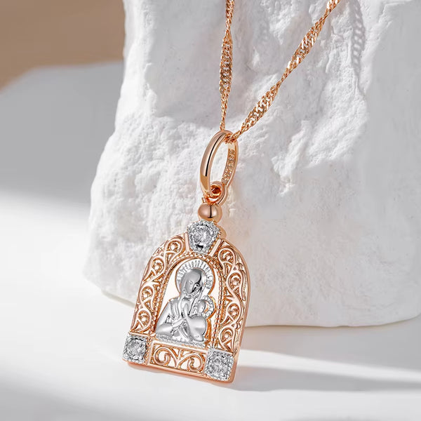 Kinel Luxury Virgin Mary Pendant Necklace For Women Men 585 Rose Gold Color Natural Zircon Jesus Charm Daily Fine Jewelry Gifts