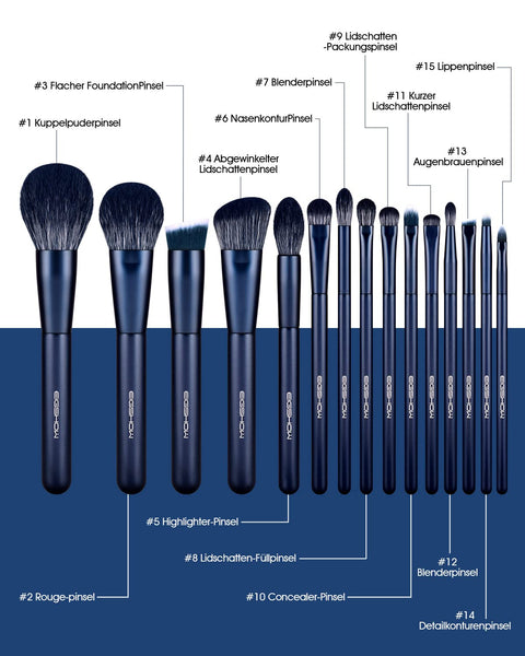 • A wide range of brushes for everyday use – it's essential to have the right brushes on hand when applying makeup. You can't simply apply blush with a foundation brush! That's why our professional makeup brush set contains 15 different brushes that will help you transform your makeup routine. From a foundation brush to blending brushes and brushes for small details, everything is included. You'll never want another brush set again.