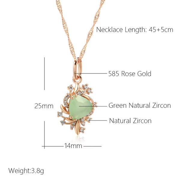 Kinel Trend Crystal Flower Pendant Necklace for Women 585 Rose Gold Color Green Natural Zircon Accessories Fine Daily Jewelry